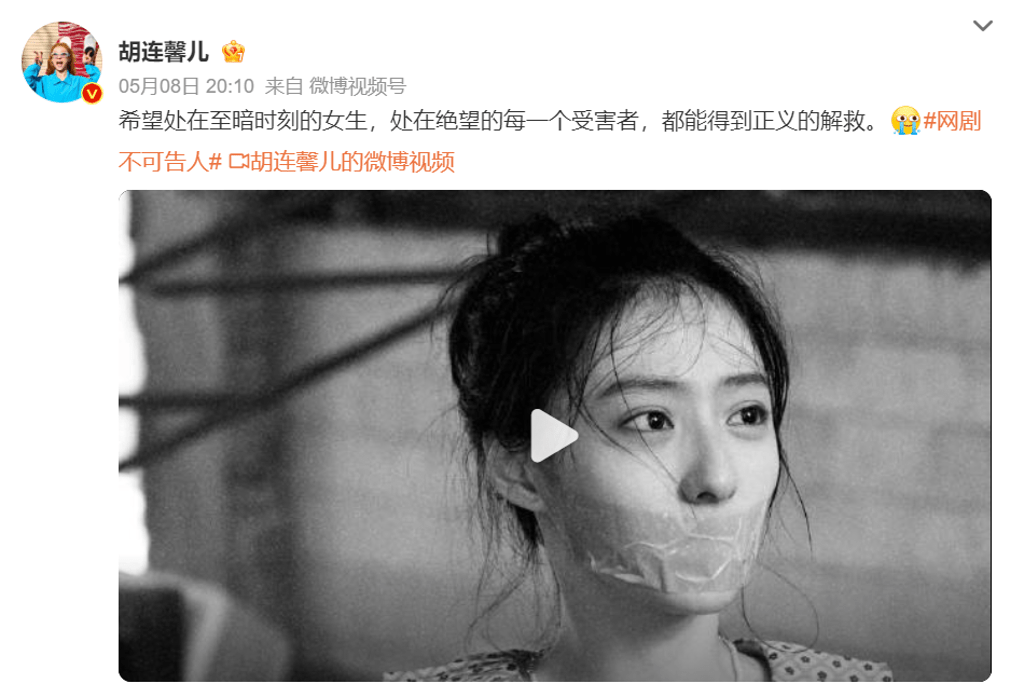 胡連馨昨晚(8日)還在社交平臺宣傳新戲,寫道:“希望處在至暗時刻的女生,處在絕望的每一個受害者,都能得到正義的解救”,并附上嘴巴被貼上膠布,遭到綁架的拍攝花絮,時間點巧合意外引發聯想。事實上,胡連馨剛從中央戲劇學院畢業,與楊冪、龔俊合作的古裝戲《狐妖小紅娘·月紅篇》待播中,因此有粉絲擔心可能會影響到接下來的作品。