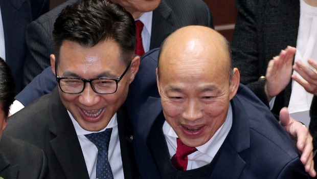 臺灣立法機構正副負責人韓國瑜(右)、江啟臣(左)。(資料照,黃世麒攝)