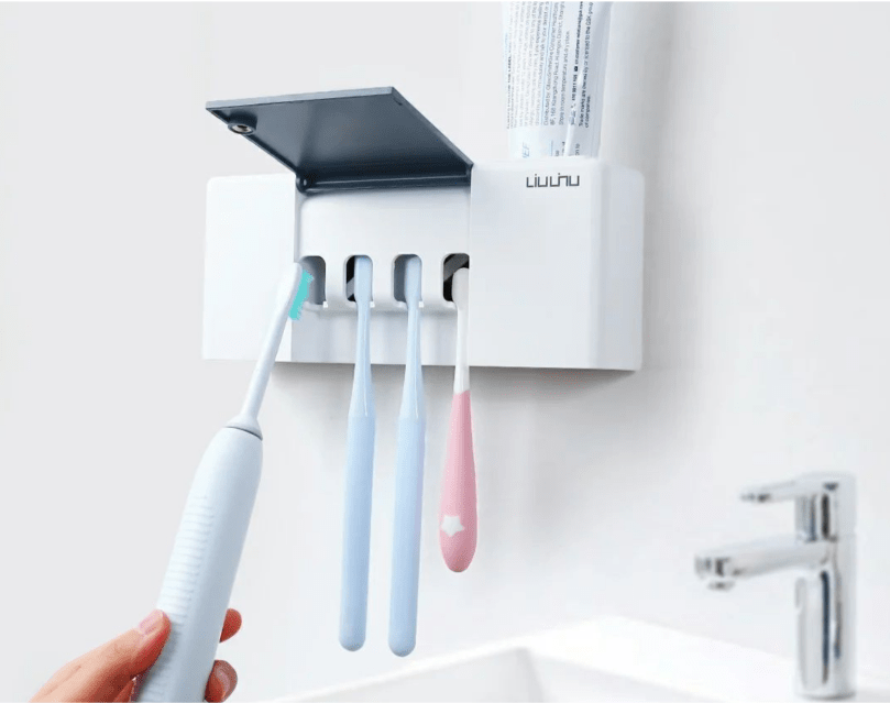 掛墻的掛架款式:一般可以放2至4支牙刷,并附有擠牙膏架,適合一家人使用,部分型號同時內置風干功能,除菌之余,還能令牙刷保持干燥,從而抑制細菌。