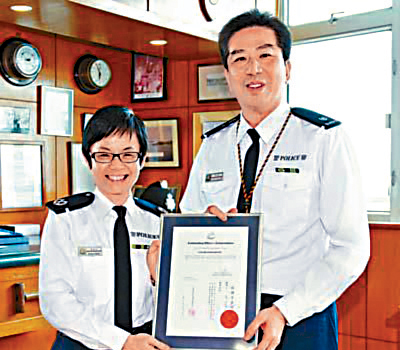 ▲袁松彪(右)曾獲頒授水警總區指揮官嘉獎狀。