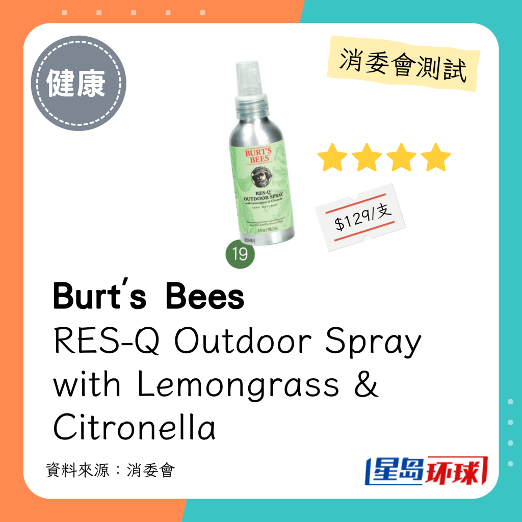Burt's Bees RES-Q Outdoor Spray with Lemongrass & Citronella:16%,總評4星