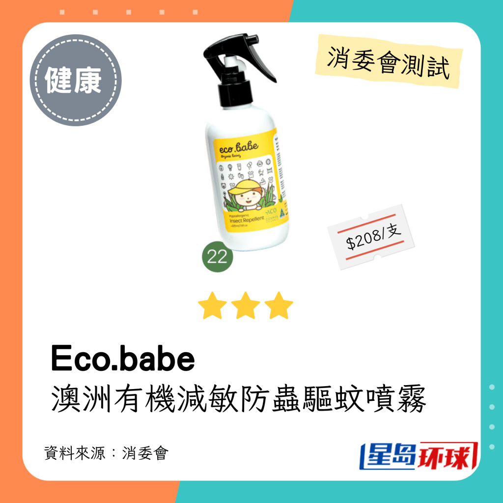 Eco.babe Organic Living Hypoallergenic Insect Repellent 澳洲有機減敏 防蟲驅蚊噴霧:24%,總評3星