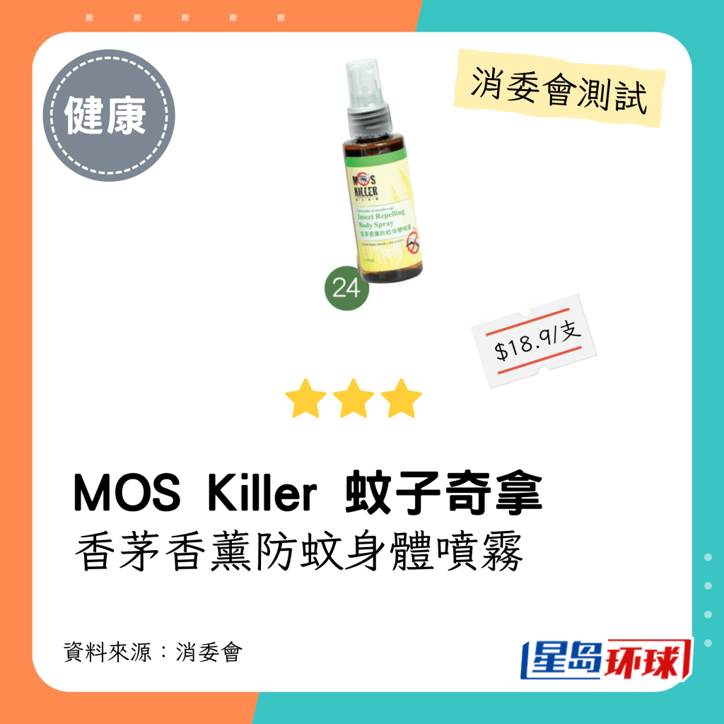 MOS Killer Citronella Aromatherapy Insect Repelling Body Spray 蚊子奇拿香茅香薰防蚊身體噴霧:0%,總評3星
