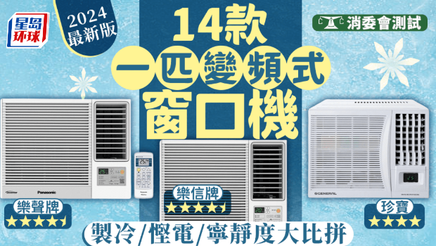消委會冷氣機2024|消委會一匹變頻式窗口式冷氣機推介|近年,香港夏天愈來愈熱,不少家庭冷氣往往要由朝開到晚,全日無休,相對傳統窗口機慳電的變頻式窗口機成為不少人的換機首選。今日消費者委員會(下稱消委會)公布了14款一匹變頻式窗口式冷氣機測試報告,從制冷力、寧靜度、能源效率(慳電能力)進行測試比拼。