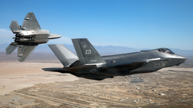 ▲F-22和F-35隱形戰機同框的資料照。(美國空軍)