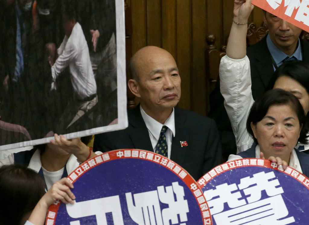 韓國瑜昨天下午三度進行朝野協商,最終破局,在傍晚5點31分,在國民黨“立委”層層護送下,進到議場宣布開會。但在入口處與綠委再爆發激烈沖撞,韓國瑜西裝被拉扯到變形,后來步入議場,在5點32分宣布繼續開會。