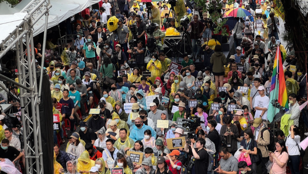 臺灣立法機構今(24日)院會將續審“國會改革”其它40多條修正案,國民黨、民眾黨團一早搶占主席臺。多個民團也再次集結在立法機構外,即使偶有細雨,一早9點會場仍陸續有民眾到場關注。