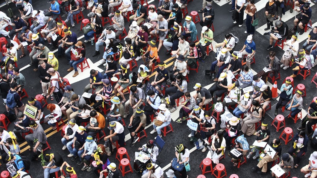 ▲超過50個民團24日號召民眾在“立法院”外青島東路與濟南路集結,要求法案退回委員會重審?,F場畫面堪比“太陽花運動”。中時