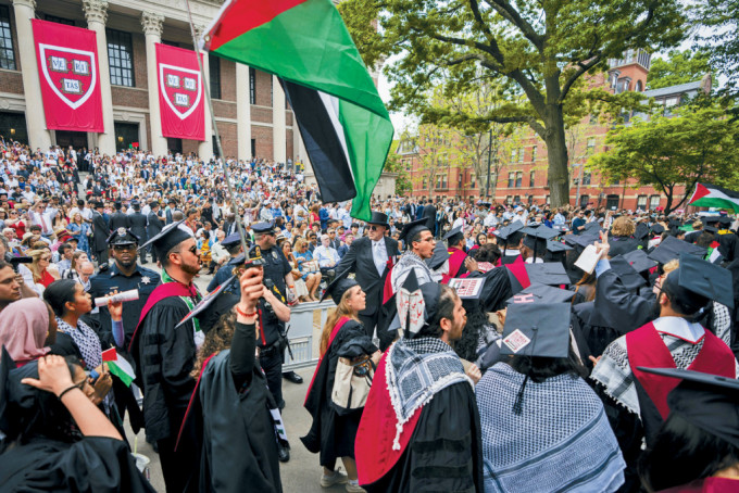 美國常春藤名校哈佛大學周四舉行畢業禮,期間有逾千師生(主要是學生)中途離場,以抗議校方拒讓13名示威學生畢業,及抗議加沙戰事。