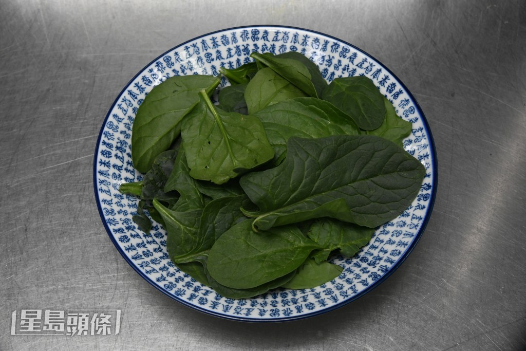 菠菜苗加入適量鹽、糖及雞粉汆水,可辟除草青味。