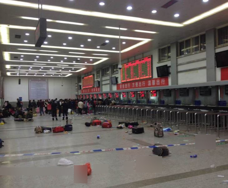 5人開始攻擊后,由臨時候車區開始,經站前廣場、第二售票區、售票大廳、小件寄存處等地,不斷斬殺旅客途人。