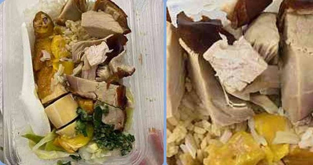 ▲有旅客由香港搭飛機到臺灣,把“燒臘雙拼”飛機餐打包帶入。 臺灣防檢署