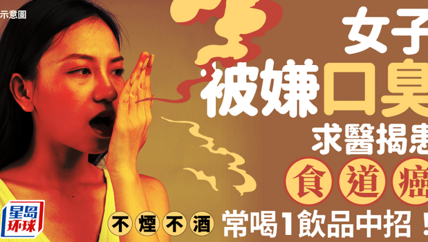 口臭因為患食道癌?一名年約50歲的女子因為濃烈口臭,在丈夫陪同下求醫。她最初以為只是便秘導致口臭,但醫生檢查后發現她患上食道癌,口臭源自癌細胞潰爛混合胃酸倒流的氣味。經細問得知,女子雖然不煙不酒,卻因為愛喝1類飲品,而埋下患食道癌的伏線。