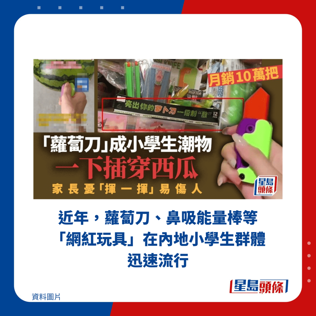 ▲近年,蘿卜刀、鼻吸能量棒等網紅玩具在內地小學生群體迅速流行。