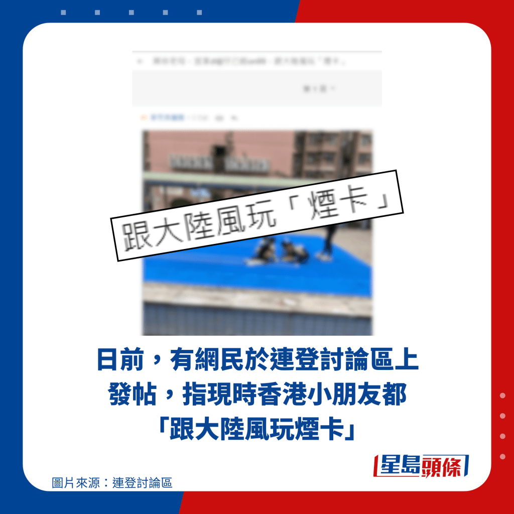 ▲日前,有網民于連登討論區上發帖,指現時香港小朋友都“跟大陸風玩煙卡”。