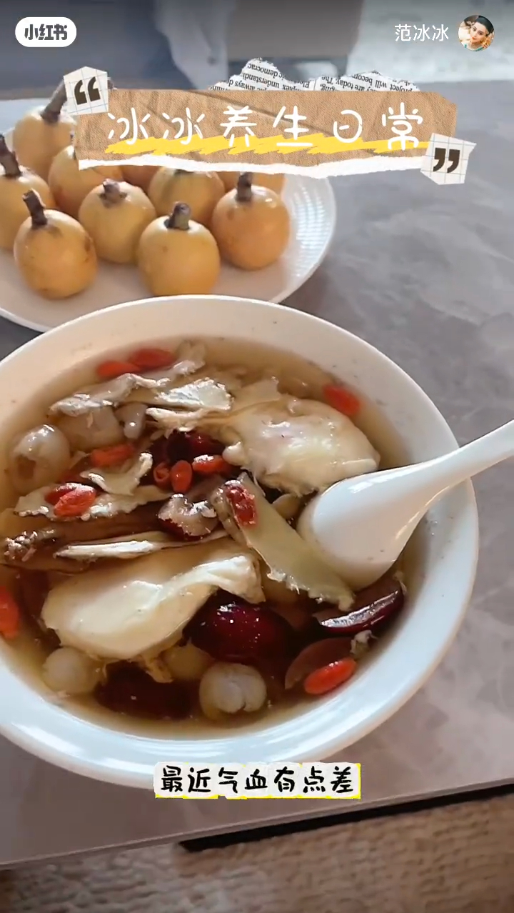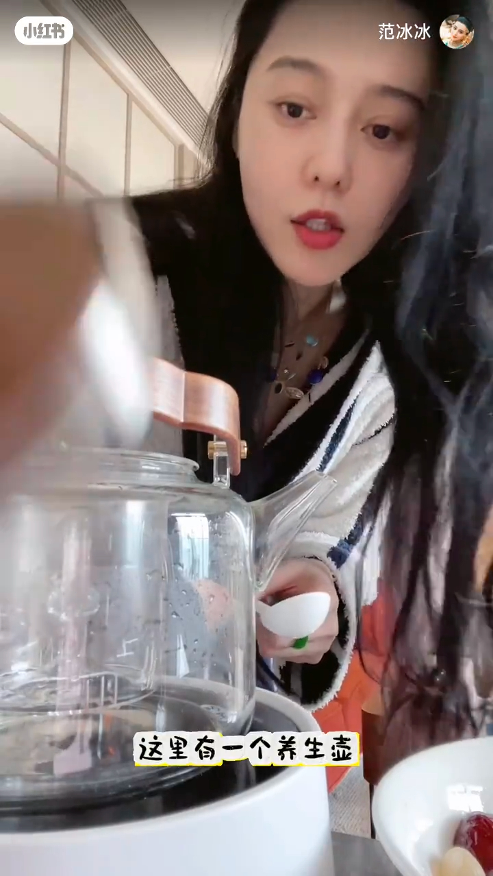 范冰冰之后吃早餐,又煮養生茶保養。1