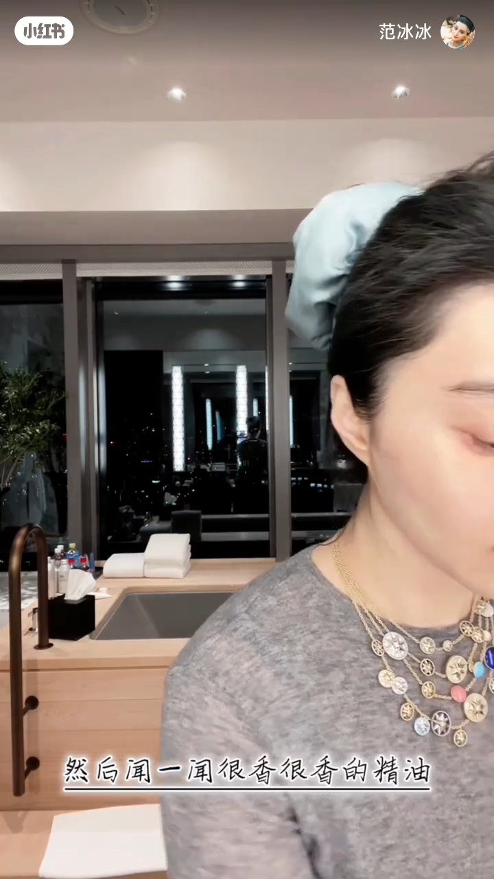 影片中所見,剛起床未刷牙洗臉的范冰冰便在大露臺拍片,外望180度維港景色,俯瞰山下建筑物和維港靚景,范冰冰也相當喜歡,并說:“陰天還是很美的,有它自己的味道吧!”范冰冰吃過早餐,又煮養生茶保養后,便在房間整理儀容準備出門,她自爆慳家一面會自己剪瀏海,與早前現身鴨脷洲outlet掃貨同樣令人驚訝。穿上浴袍的她,身后有個保溫柜,內里全是一瓶瓶香港很容易買到的烏龍茶,另一邊則可走出戶外,放有一大盆植物。范冰冰近來經常在豪宅內拍片,見到其家中裝潢帶點日系簡約風,另一段影片就見到她身在浴室,同樣有個日式浸浴,且有落地大玻璃窗,可一邊浸浴,一邊欣賞外面景觀。