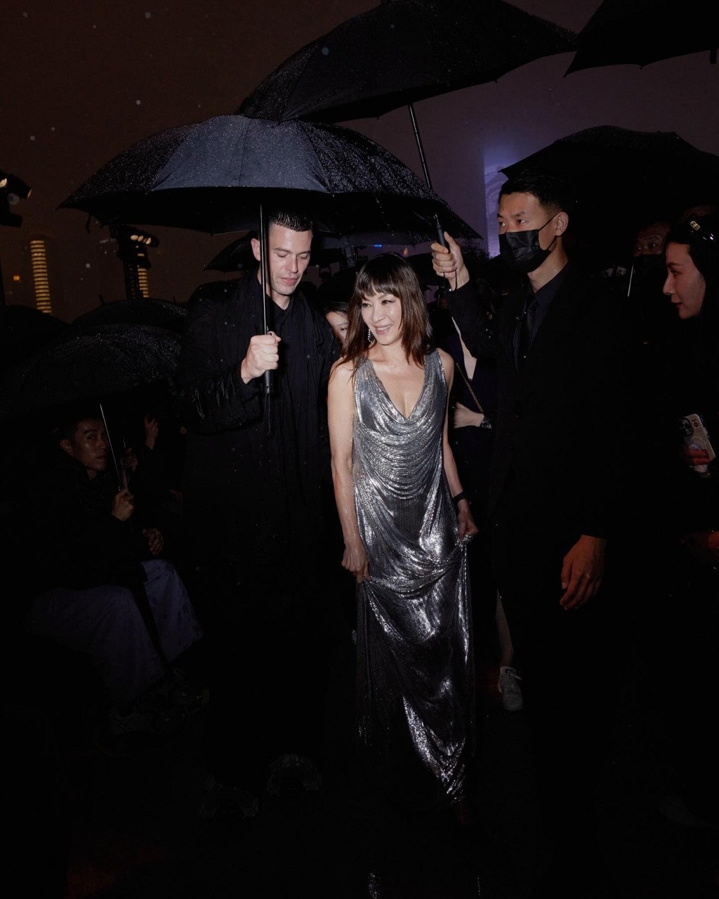 楊紫瓊今年出席奧斯卡頒獎典禮、Met Gala等大型活動,身為品牌大使的她均著上Balenciaga晚裝現身。 前晚楊紫瓊在上海出席Balenciaga時裝,她在IG公開片段,見當時上海似乎在落毛毛雨,楊紫瓊有工作人員隨行撐傘,當她拍照脫下黑色長裡時,更有至少三人伸出手接外套,身為國際級影后的她極大排場。