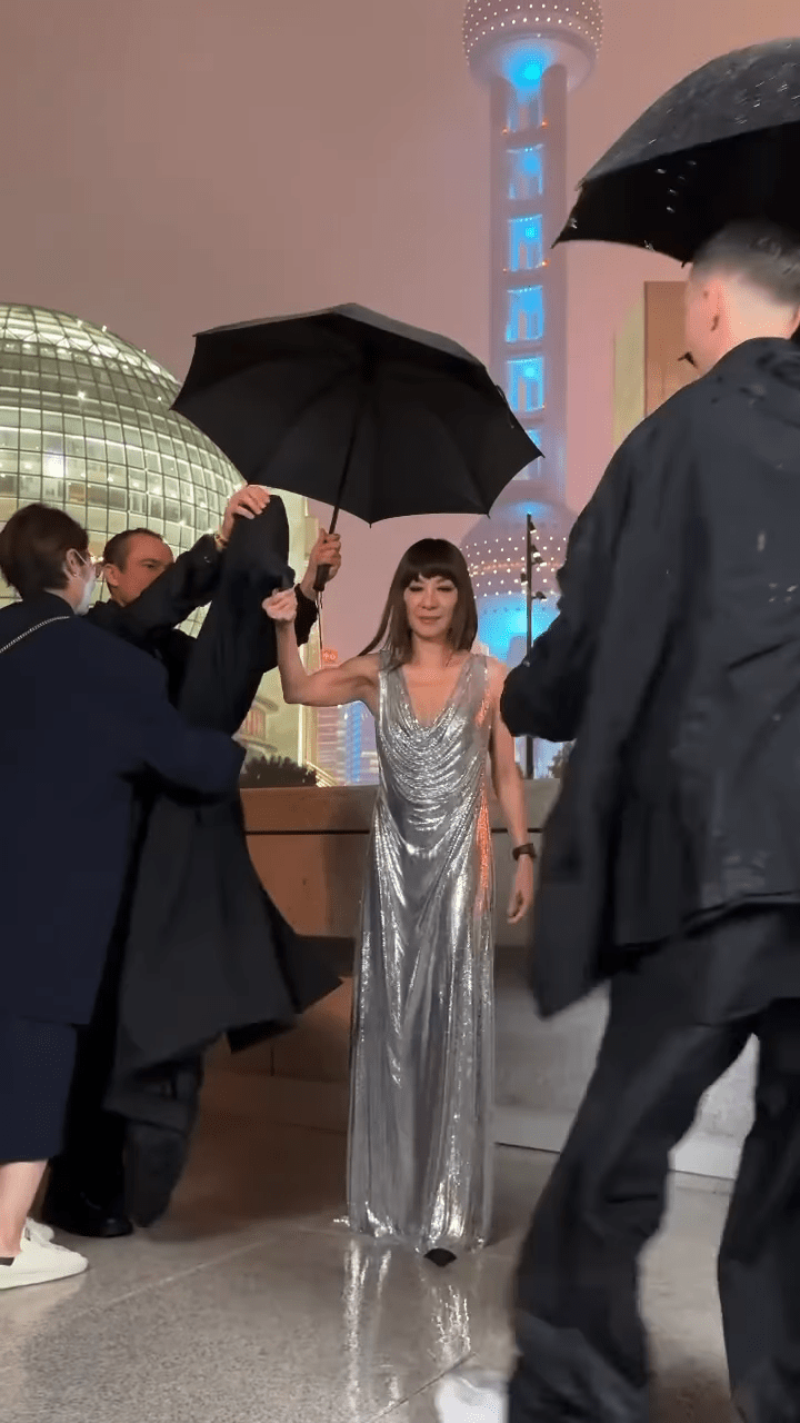 現年61歲的楊紫瓊早已躍升國際級,去年憑《媽的多重宇宙》(Everything Everywhere All at Once)成為奧斯卡影后,登上事業高峰。 楊紫瓊30日晚以品牌大使身份,現身上海出席時尚品牌Balenciaga時裝秀,當日上海下起毛毛雨,短片見楊紫瓊獲至少4名工作人員護駕,為她撐傘。