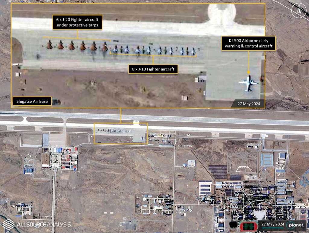 美國《新聞周刊》(Newsweek)引AllSource Analysis于5月30日的報告中表示,解放軍日喀則空軍基地是一個軍民兩用機場,距離與印度的“爭議邊界”約93英里(約150公里)。6月2日的衛星圖片仍顯示6架“殲20”戰斗機停在日喀則空軍基地跑道邊,雖然目前無法確定這些戰機是否會長期在該機場駐守,但在中印邊境地區的西藏日喀則空軍基地見到殲20戰機極為罕有。