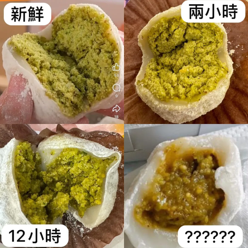 民豐粉面行建議,糯米糍盡快食用。店家表示一直有聽到部分食客表示“沒有開心果味”、“不好吃”,經過細心調查發現,很有可能是擺放太久導致。