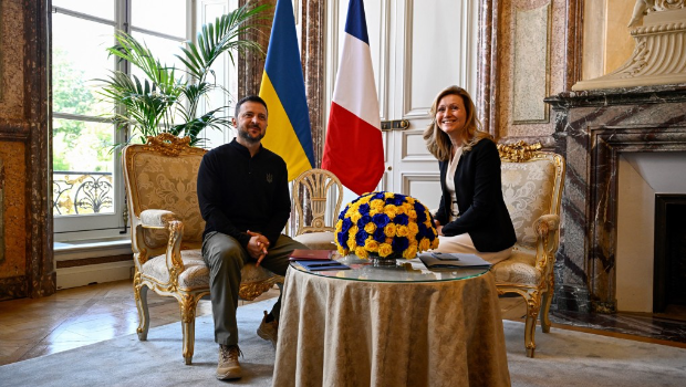 法國國民議會議長布勞恩-皮維歡迎澤連斯基。 路透社