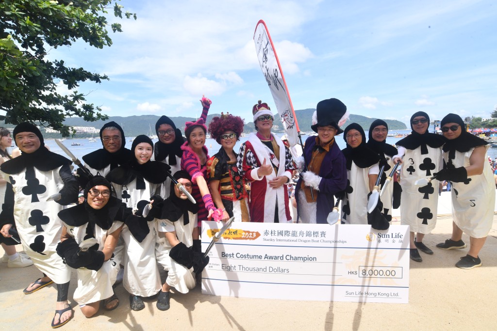 去年有不少選手一起扮鬼扮馬參加赤柱國際龍舟錦標賽2023。 資料圖片