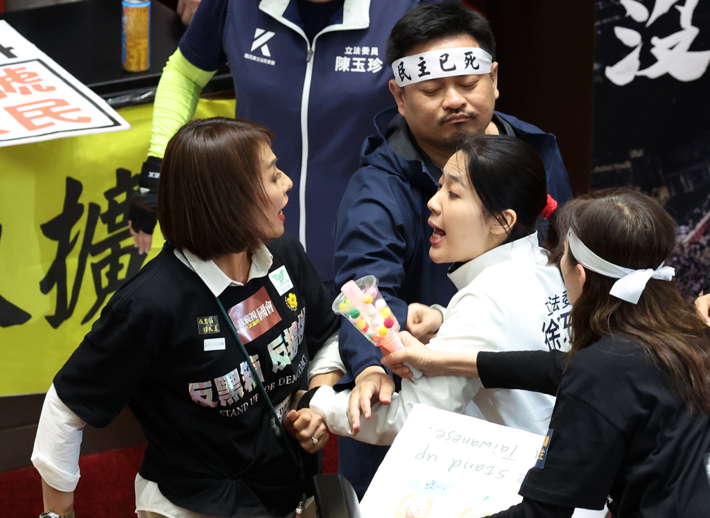 ▲徐巧芯(右)強調她抓住邱議瑩(左)衣領的原因:“我不愿意也不要讓自己人再受到欺負了!” 中時資料照