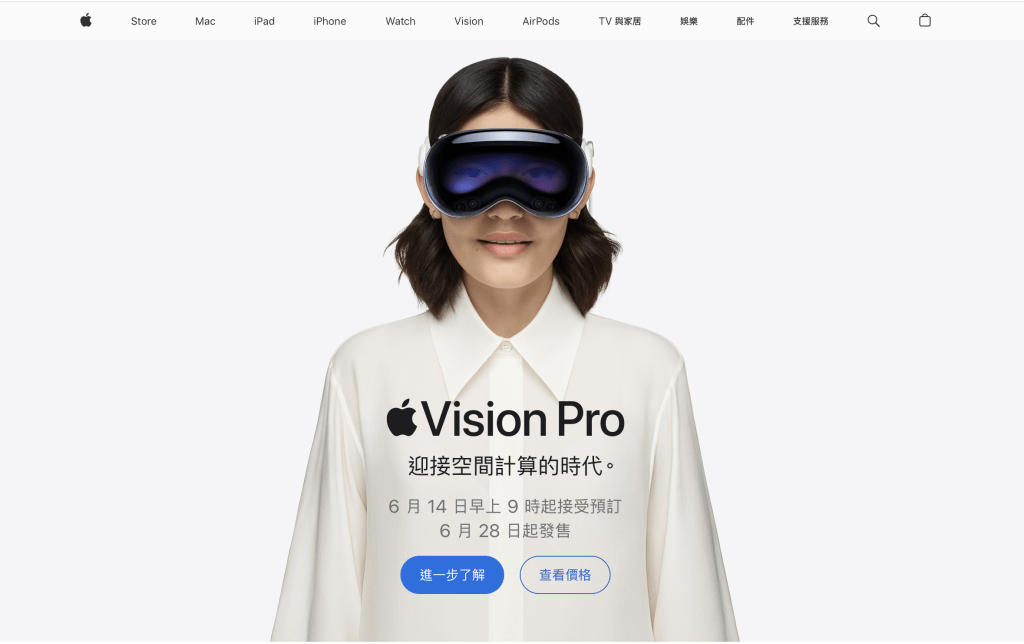 Apple宣布今年初于美國率先開賣的頭戴式空間運算裝置Vision Pro,終于首度在其他地區發售,香港果粉可以本周五于官方預訂,最快6月28日取貨,售價由$27,999起。