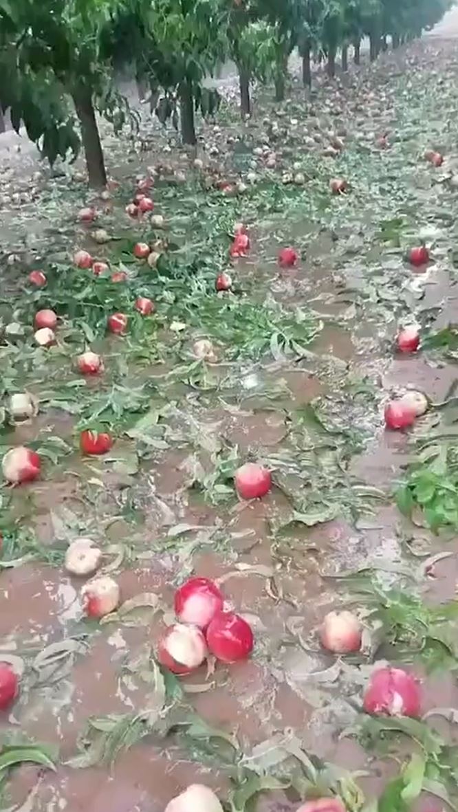 冰雹摧毀將近收成的蜜桃。
