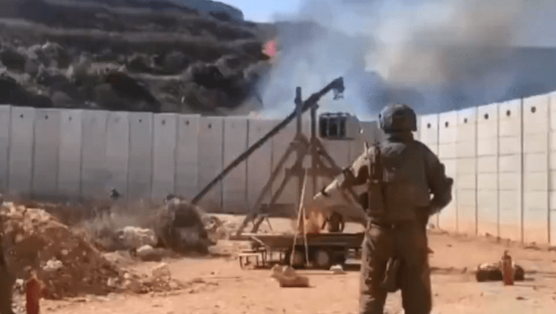 《耶路撒冷郵報》報道,一段6秒影片在網絡瘋傳,以軍使用的投石機安裝在拖車上。投石機可把火球彈射至空中,越過高聳石墻飛進黎巴嫩境內。除了發射火球,在場士兵也有人拿著滅火器,以防意外發生。