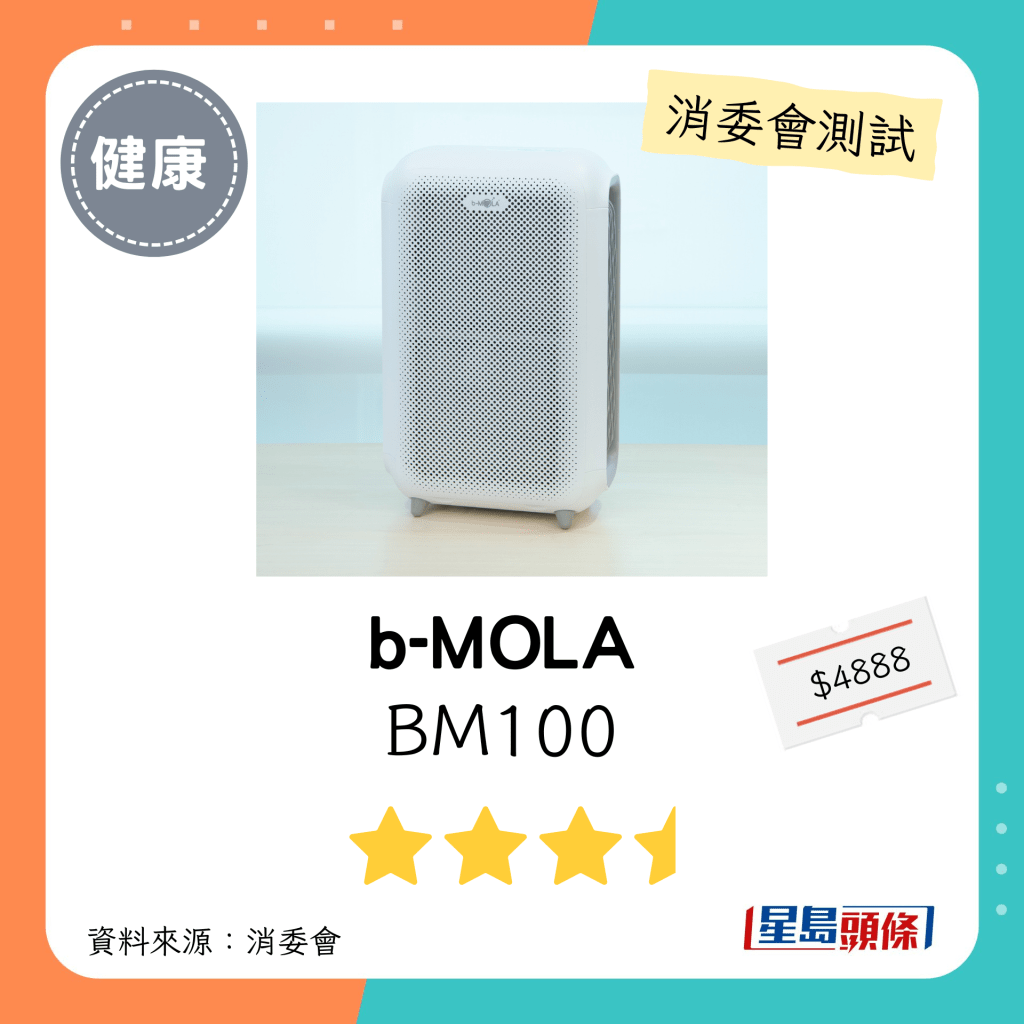 b-MOLA(型號:BM100):最大適用房間面積介乎646-1000平方呎。