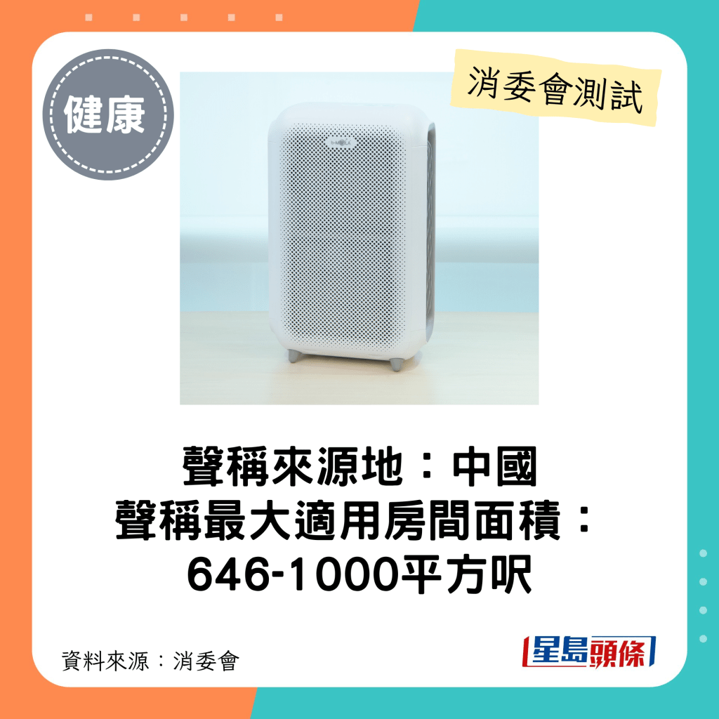 消委會4星空氣清新機(最大適用房間面積介乎646-1000平方呎)