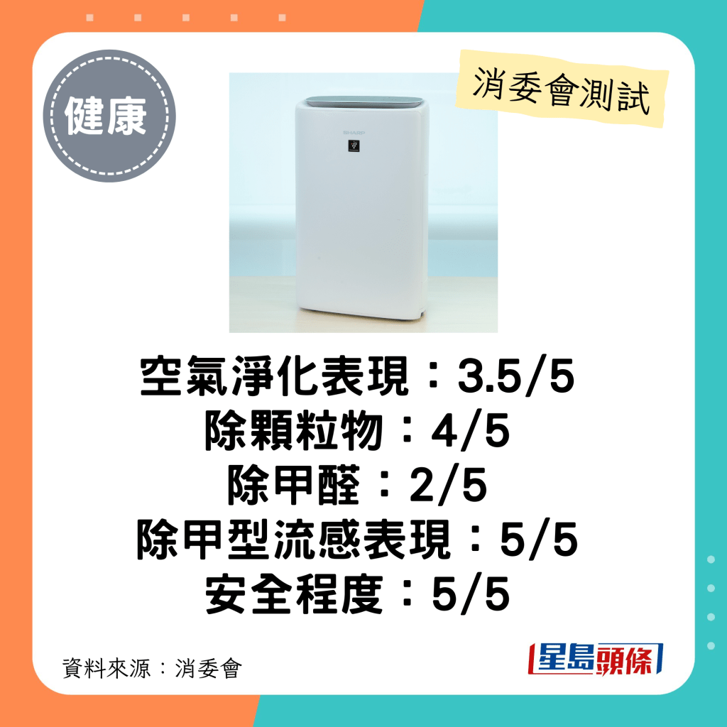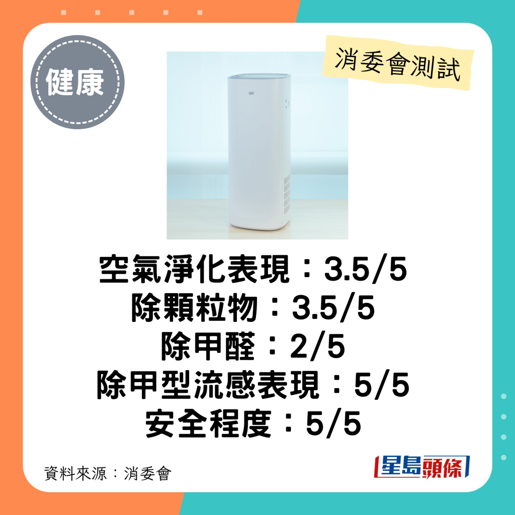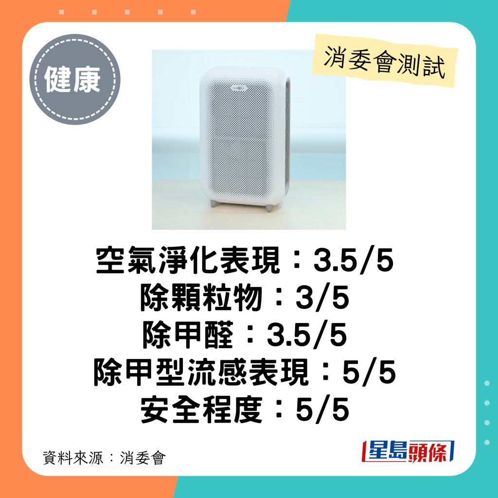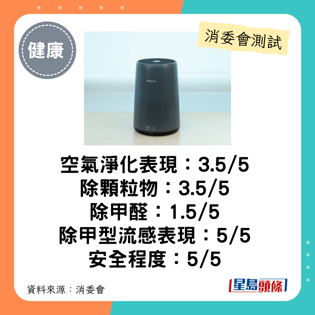 消委會空氣清新機:總評3-3.5分。