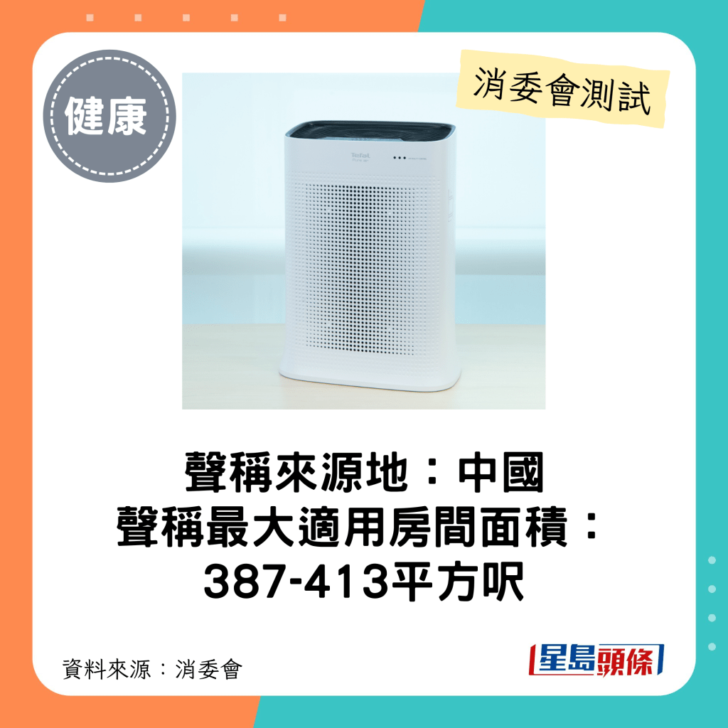 消委會4星空氣清新機(最大適用房間面積介乎387-413平方呎)