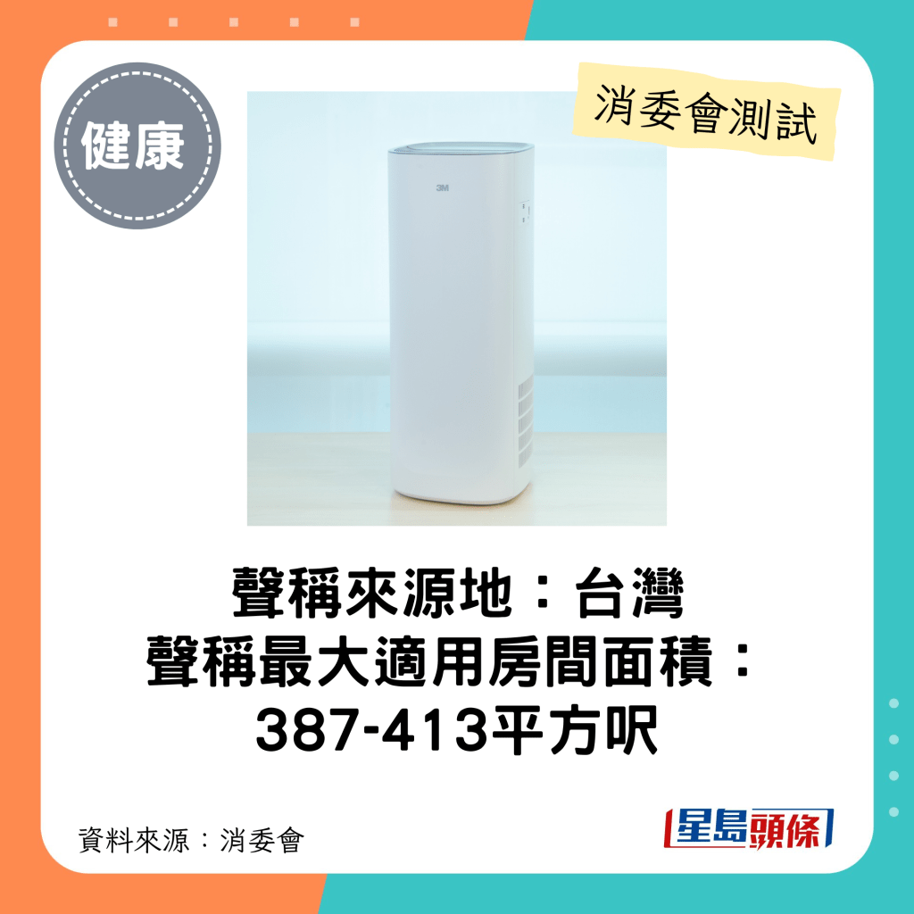 消委會3星半空氣清新機(最大適用房間面積介乎387-413平方呎平方呎)