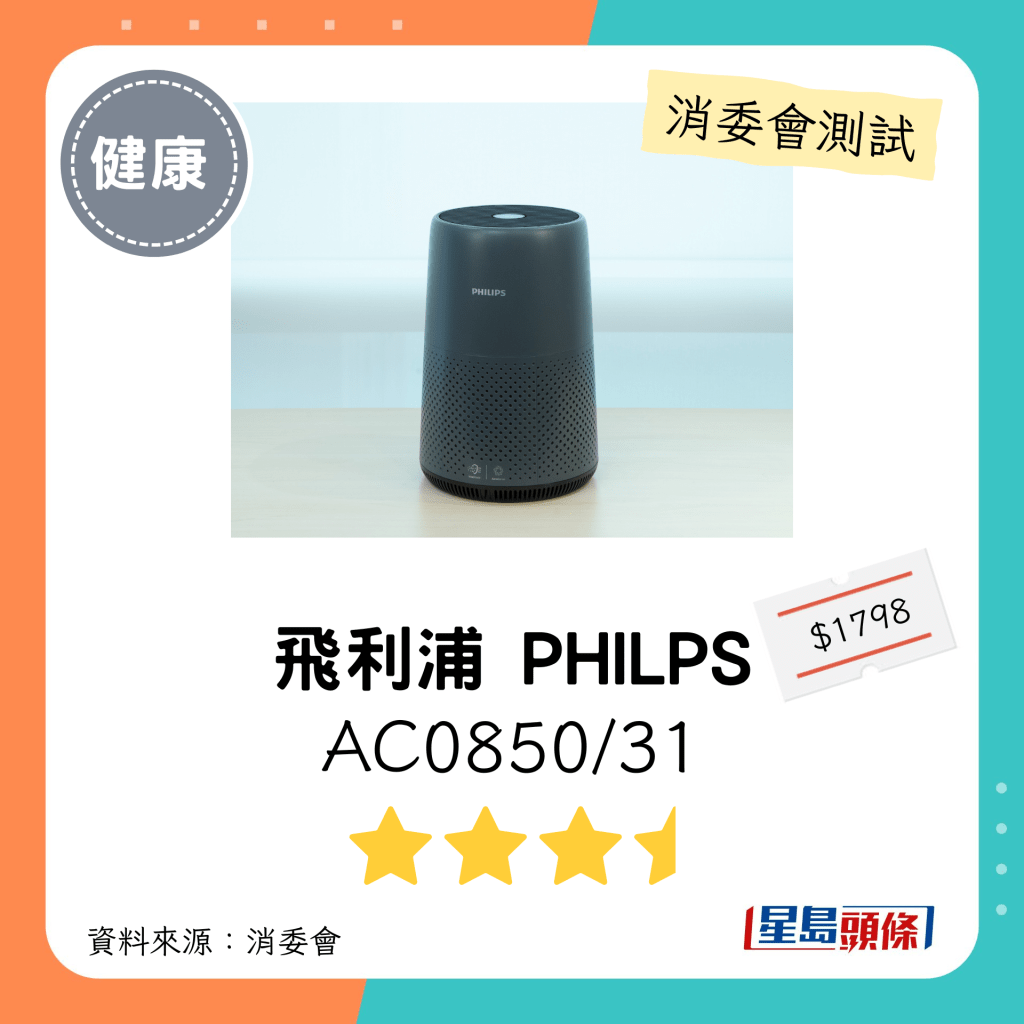 ▲飛利浦 PHILIPS(型號:AC0850/31):3星半。