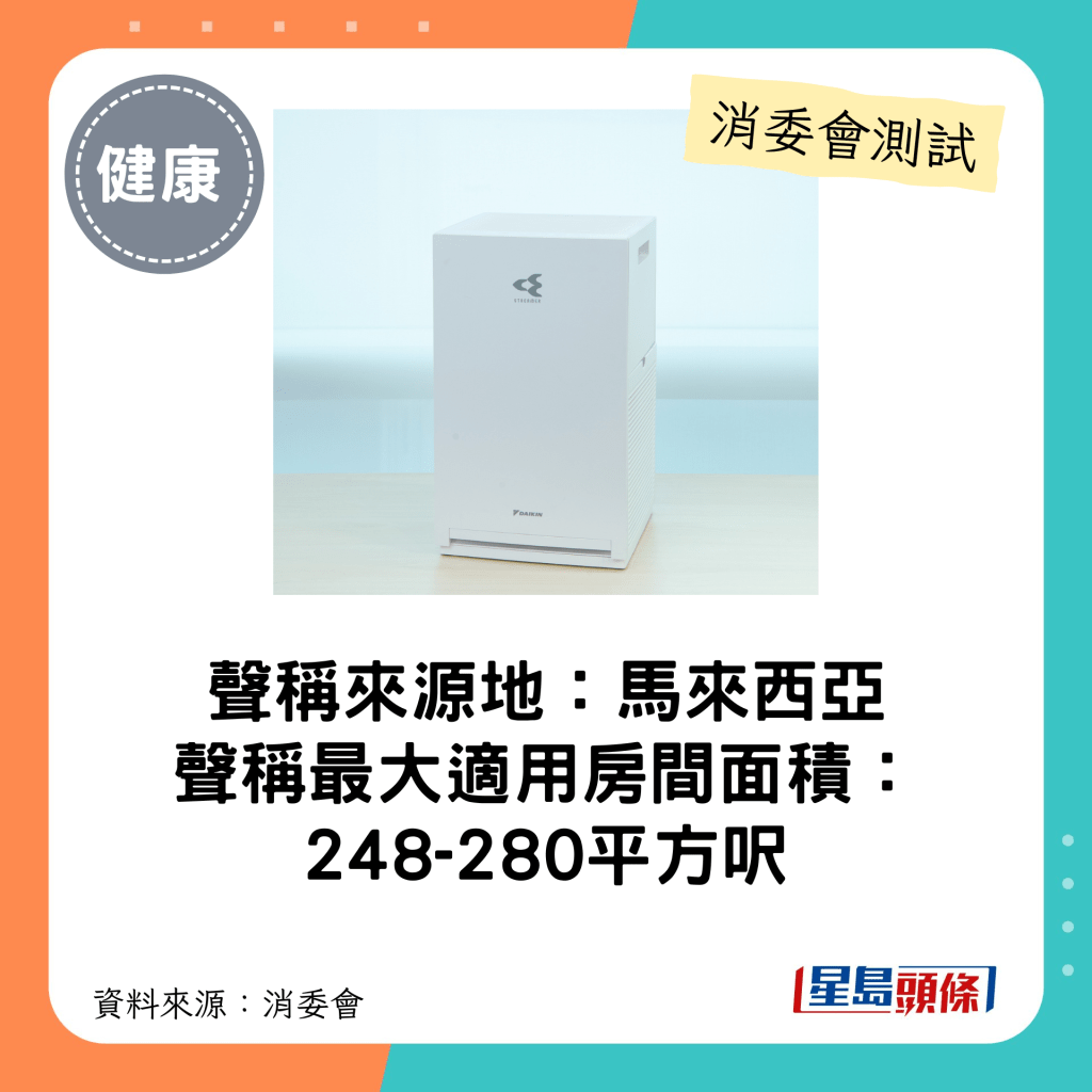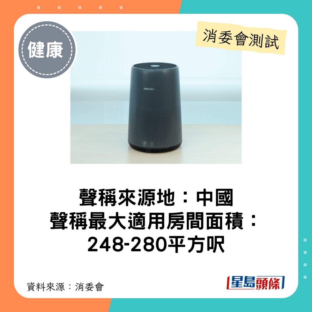 消委會4星空氣清新機(最大適用房間面積介乎248-280平方呎)