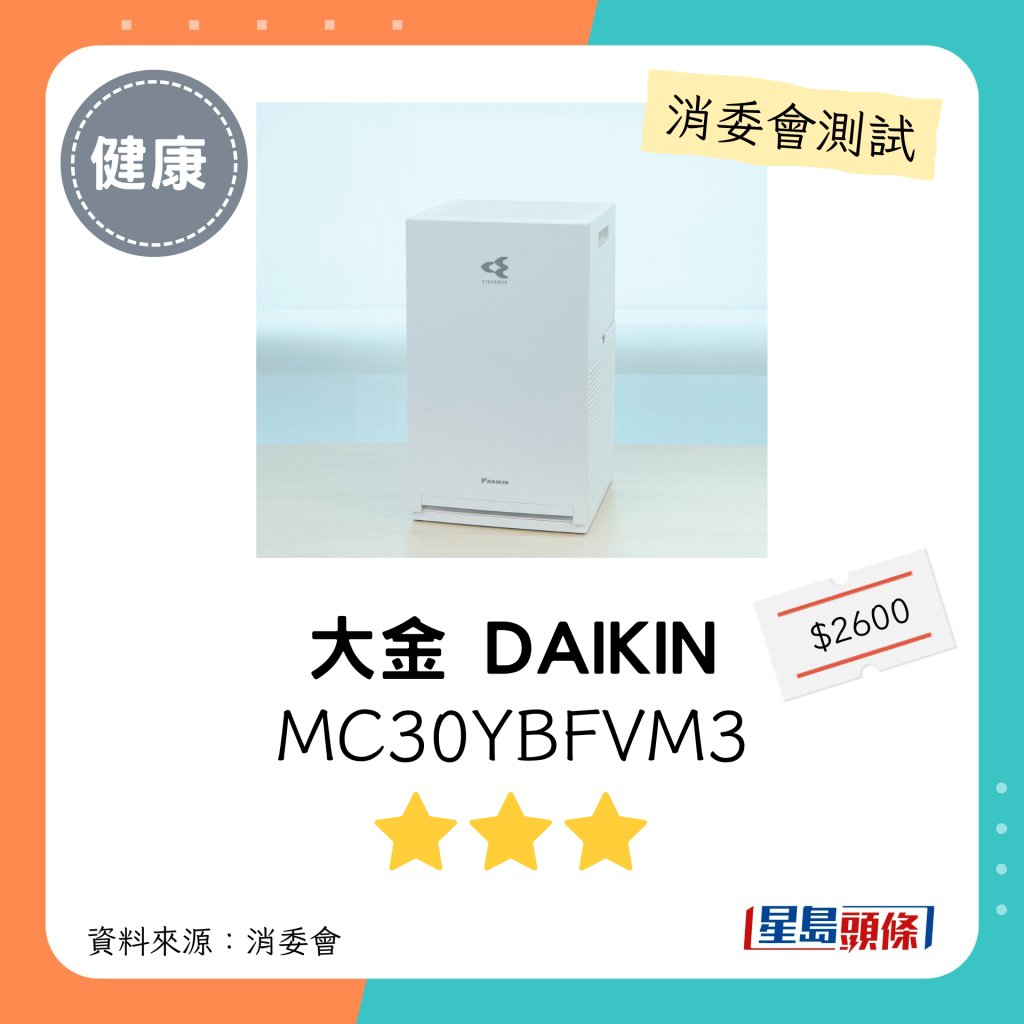 ▲大金 DAIKIN(型號:MC30YBFVM3):3星。