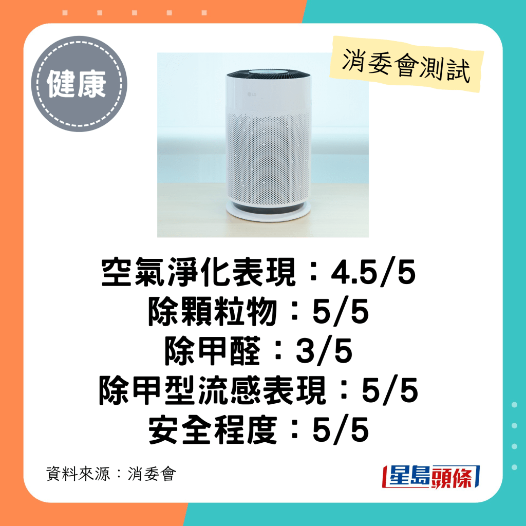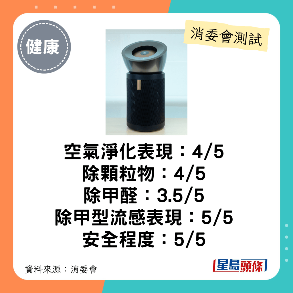 ▲消委會4-4.5分總評空氣清新機。