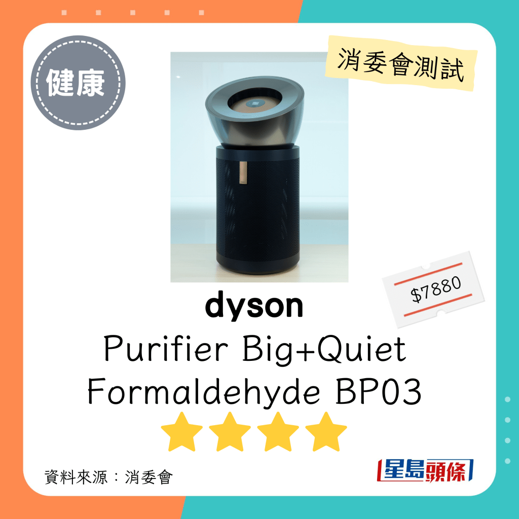 ▲dyson(型號:Purifier Big+Quiet Formaldehyde BP03):4星。