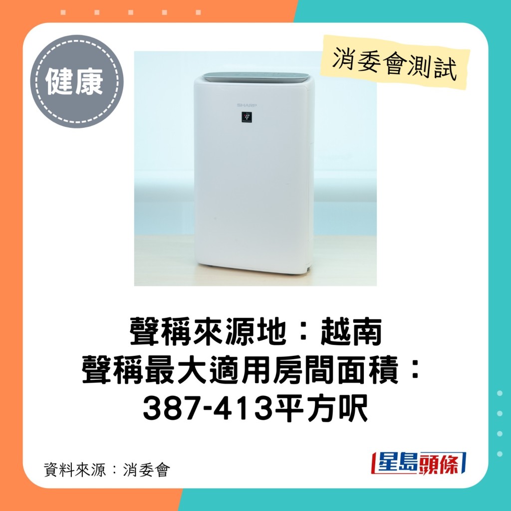 ▲SHARP(型號:KI-N50A-W):最大適用房間面積介乎387-413平方呎。