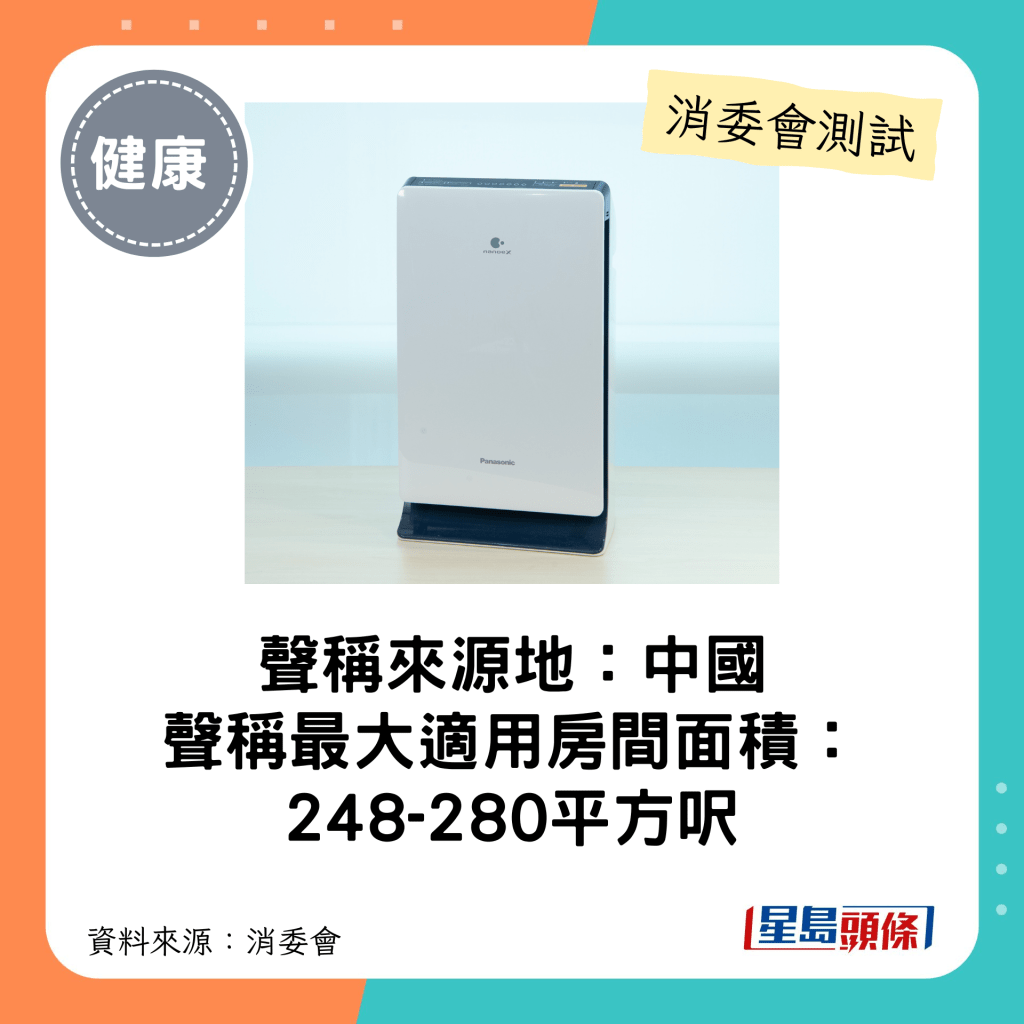 ▲Panasonic(型號:F-PXV35H):最大適用房間面積介乎248-280平方呎。