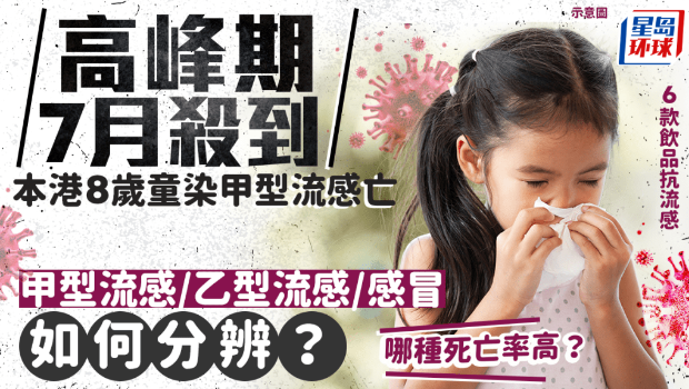 香港7月將踏入流感高峰期,一名曾接種流感疫苗的8歲女童,本周一(17日)求醫后感染甲型流感死亡,這亦是香港今年第5宗兒童感染流感病毒死亡的個案。到底有致命風險的流感與一般感冒癥狀有何分別?甲型流感、乙型流感又可如何分辨,何者死亡風險較高?