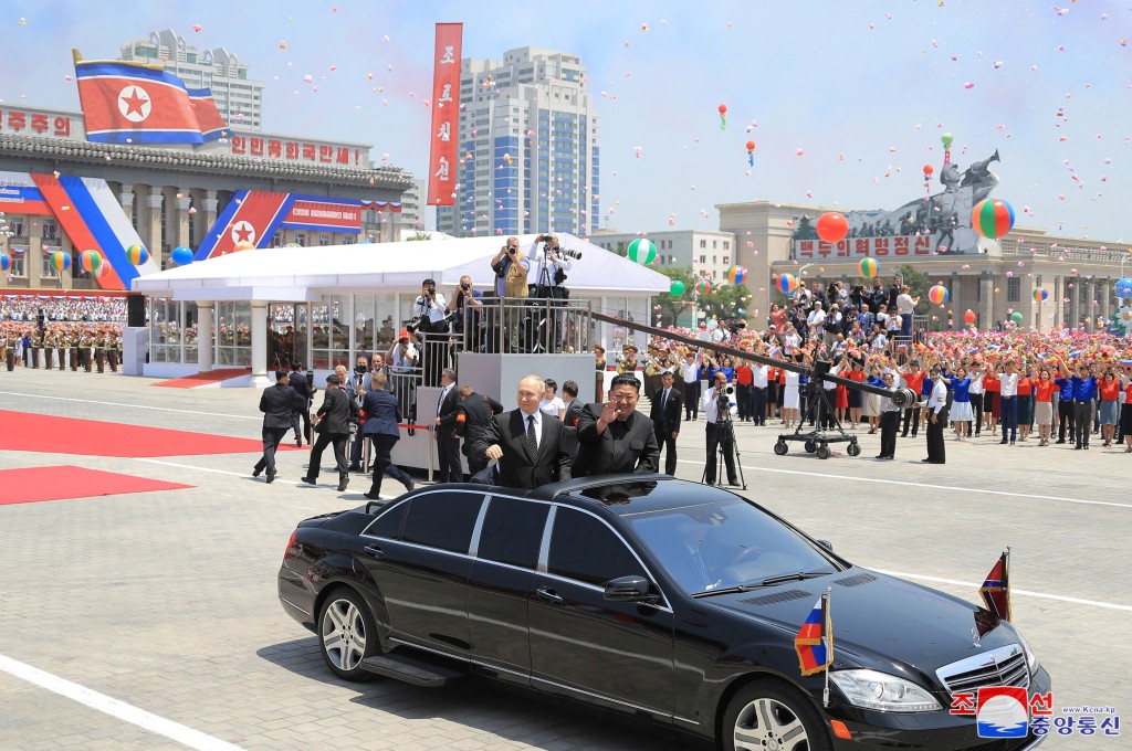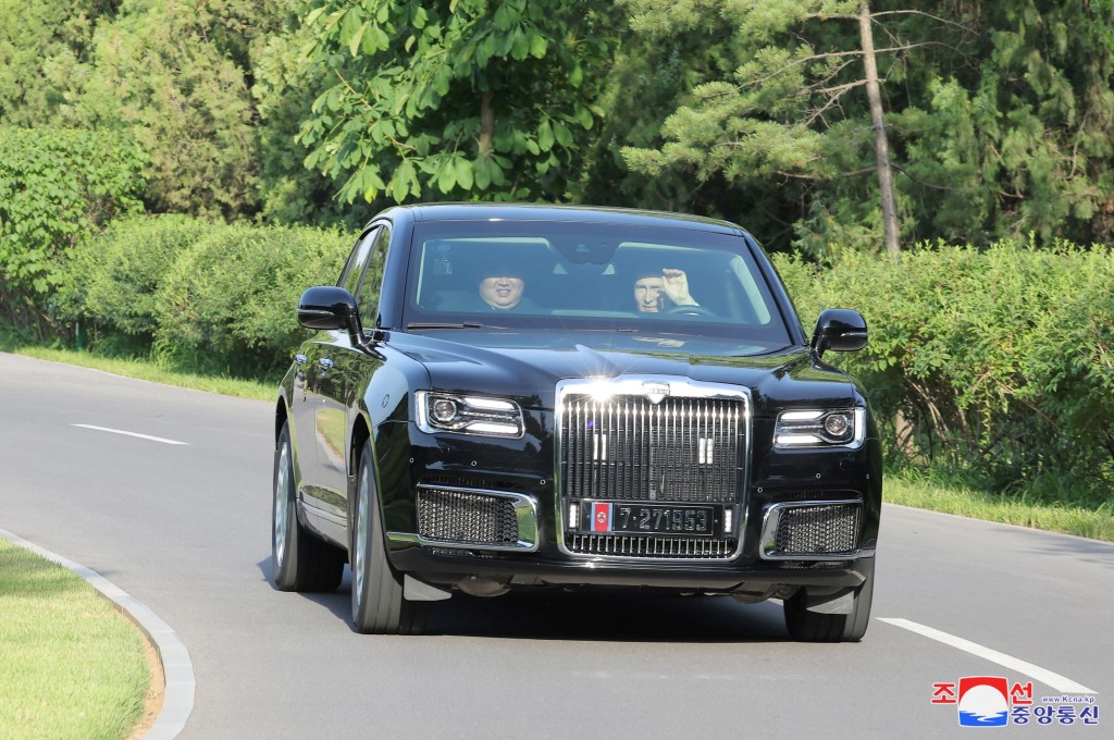 俄羅斯總統普京周三(19日)到訪平壤與朝鮮領導人金正恩會面,全球矚目。普京睽違24年踏入朝鮮,普京與金正恩彼此互贈禮物成為了焦點。普京此行送給金正恩的禮物之一是俄制豪華轎車Aurus Senat,兩人甚至輪流駕駛轎車兜風,雙方都開懷大笑,向外界展示朝俄兩國的友誼。