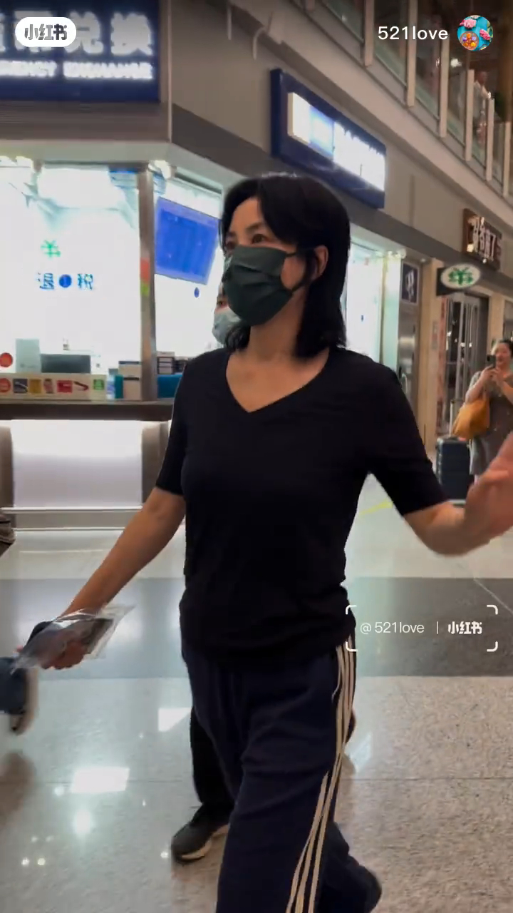 王菲以一身休閑裝扮在機場出現,簡單穿上黑色T恤配藍色條紋運動褲,加上同品牌的波鞋,簡約而不失優雅。王菲一如以往般戴上口罩,但雙眼笑意盈盈,似乎心情相當輕松,她又一手插褲袋,一邊不停整理口罩。受到熱情的粉絲包圍,王菲即向大家揮手,之后她在人群中認出了王一博的粉絲,更主動向他們說了一句:“王一博這么晚還沒到???”引起現場起哄,其后王一博巧合地以條紋褲及戴上口罩現身,兩人今次同樣飛往巴黎參加時尚活動。網民都大贊王菲保養得宜,發量驚人之余,皮膚和體態同樣處于巔峰,早前謝霆鋒為電影練成一排朱古力腹肌,更曬出一輯“雄風”寫真,網民都笑指很羨慕王菲,今次王菲現身也引起討論,“越來越像謝霆鋒”、“整個人氣質跟謝霆鋒一模一樣”、“她現在松弛感,看著舒服”。