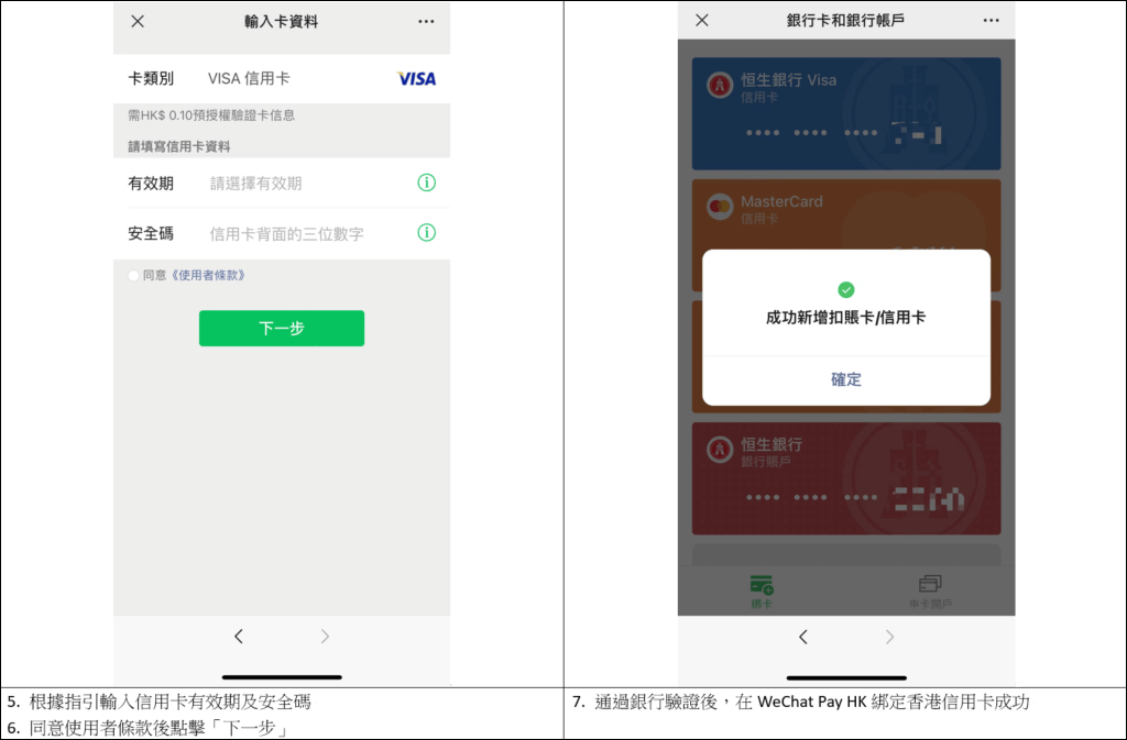 8. WeChat Pay HK綁定香港信用卡成功。