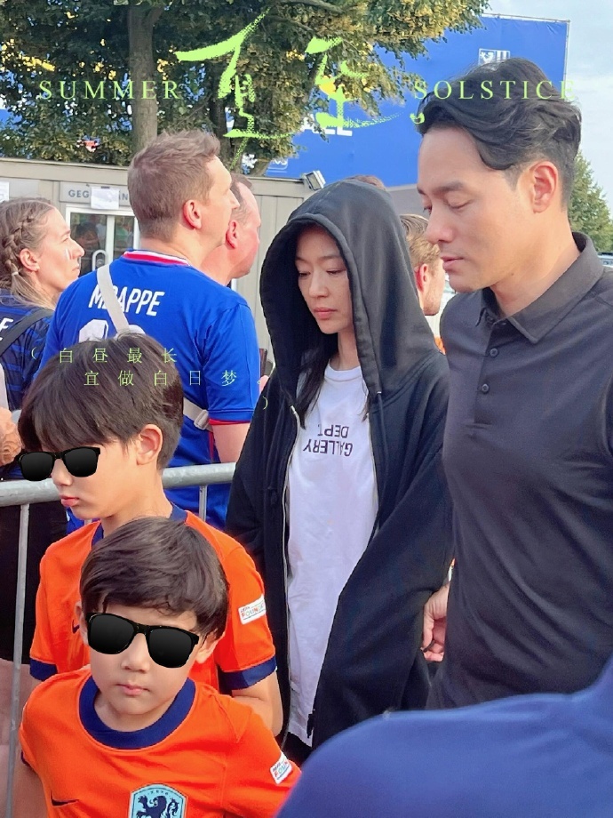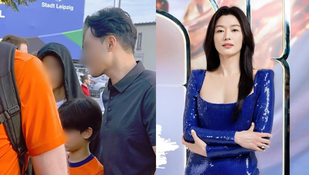 韓國女星42歲全智賢當年憑電影《我的野蠻女友》,在亞洲造成轟動,2013年與金秀賢合作韓劇《來自星星的你》,為她登上事業高峰。 全智賢與企業家老公崔俊赫結婚12年,兩子分別8歲及6歲,全智賢一直對兩個囝囝好保護,小朋友甚少曝光,不過近日有網民在德國歐洲杯會場偶遇全智賢一家四口,意外公開全智賢兩子容貌。