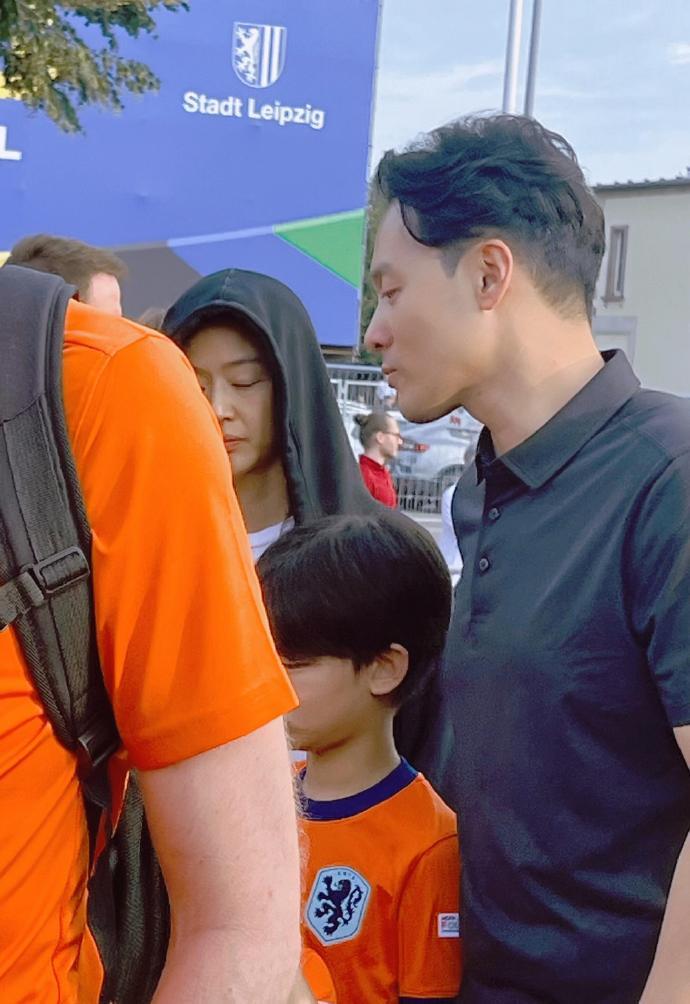 韓國女神全智賢兩子罕曝光顏值惹熱議,一家看歐洲杯被捕獲