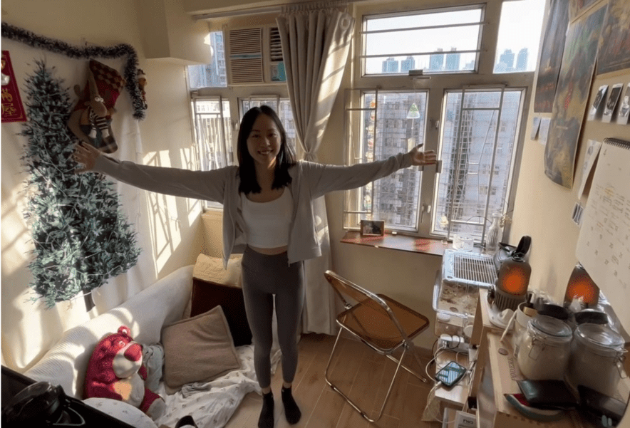 ▲近日她就以“HK香港十平米劏房租金$2650人均每月”為題,在小紅書上上載一條短片,分享與男友兩年前在香港住的第一間小窩居環境及體驗。
